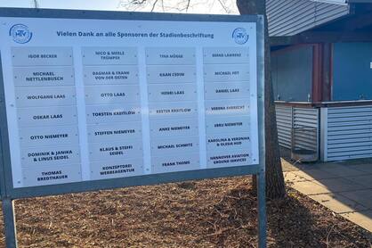 Projekt erfolgreich beendet: Dank der großartigen Unterstützung unserer Spender konnten wir die neue Stadionbeschriftung realisieren.